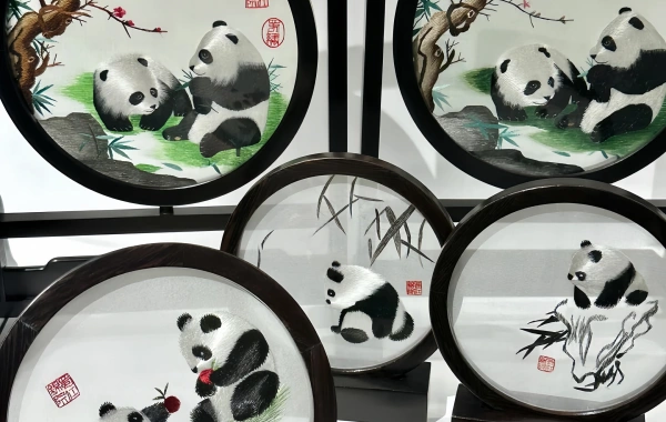Created by a modern Shu Embroidery master, "Pandas in Bamboo Grove" is a contemporary masterpiece that has gained international recognition. The piece depicts a group of adorable pandas playing and eating bamboo in a lush bamboo grove. The artisan has used a combination of bold and soft colors to create a vivid and lifelike image of the pandas, while the delicate stitching techniques give the bamboo leaves a sense of texture and movement. This work not only showcases the high level of skill of modern Shu Embroidery artists but also reflects the unique cultural identity of Sichuan.