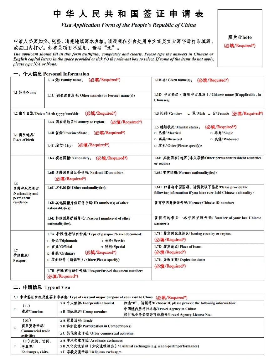 Visa Application Form: Fill out the China visa Application Form accurately and completely. This form can be downloaded from the Chinese consulate or embassy website.
