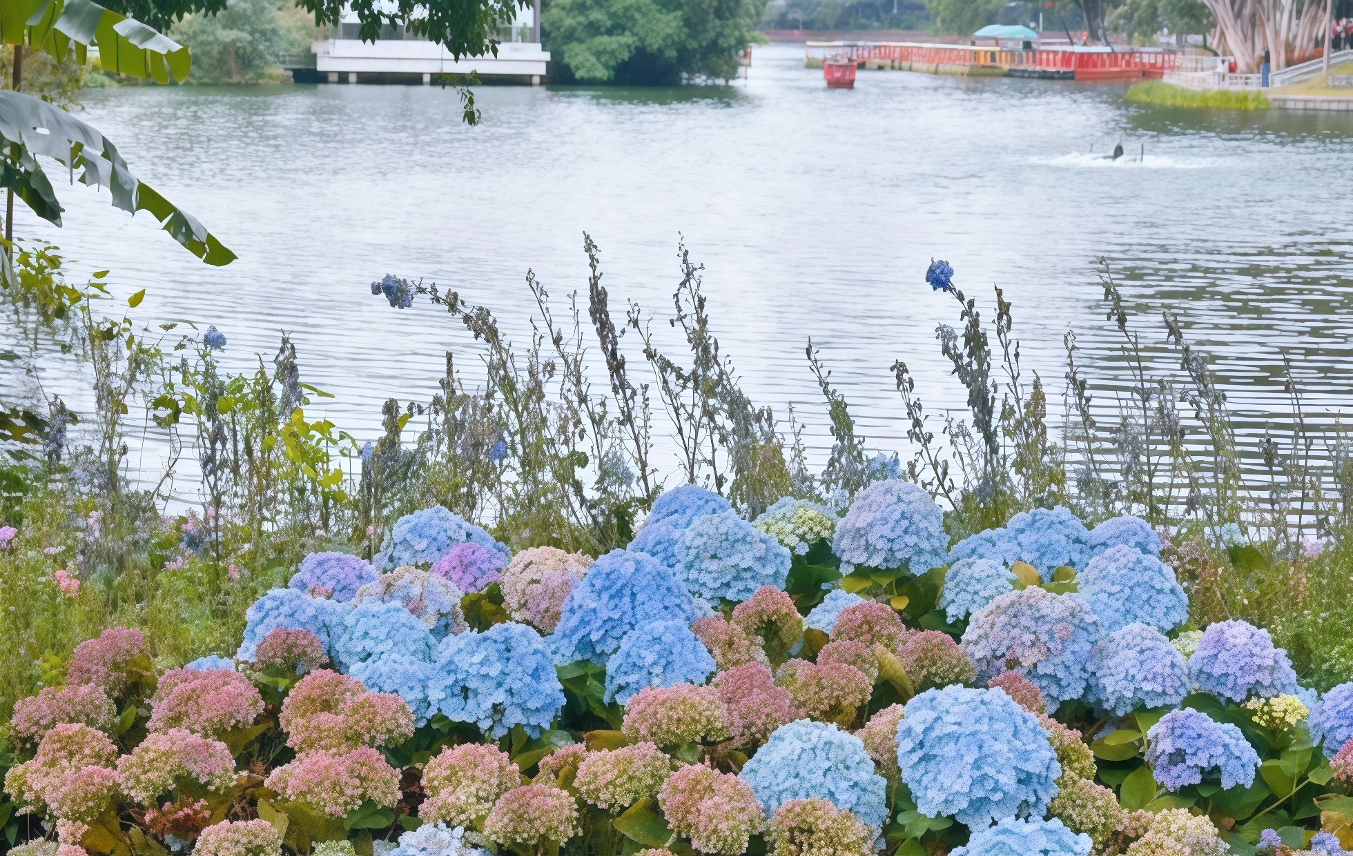 Huadu Huashan Lake Park is a romantic destination perfect for couples or anyone looking for a peaceful retreat. The lake is surrounded by green hills and blooming flowers, creating a picturesque setting.