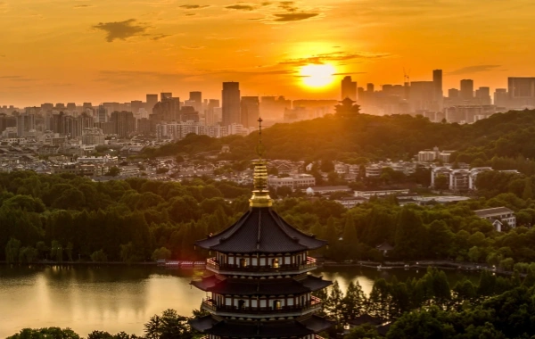 Leifeng Pagoda, a five-story octagonal tower, offers panoramic views of West Lake during sunset. The “雷峰夕照” (Lei Feng Xi Zhao) scene comes alive as golden light bathes the lake and surrounding mountains. Climb the pagoda to spot the Three Pools Mirroring the Moon Island below. History buffs can explore the adjacent Net Garden, a Ming Dynasty-style garden with bonsai trees and stone bridges.