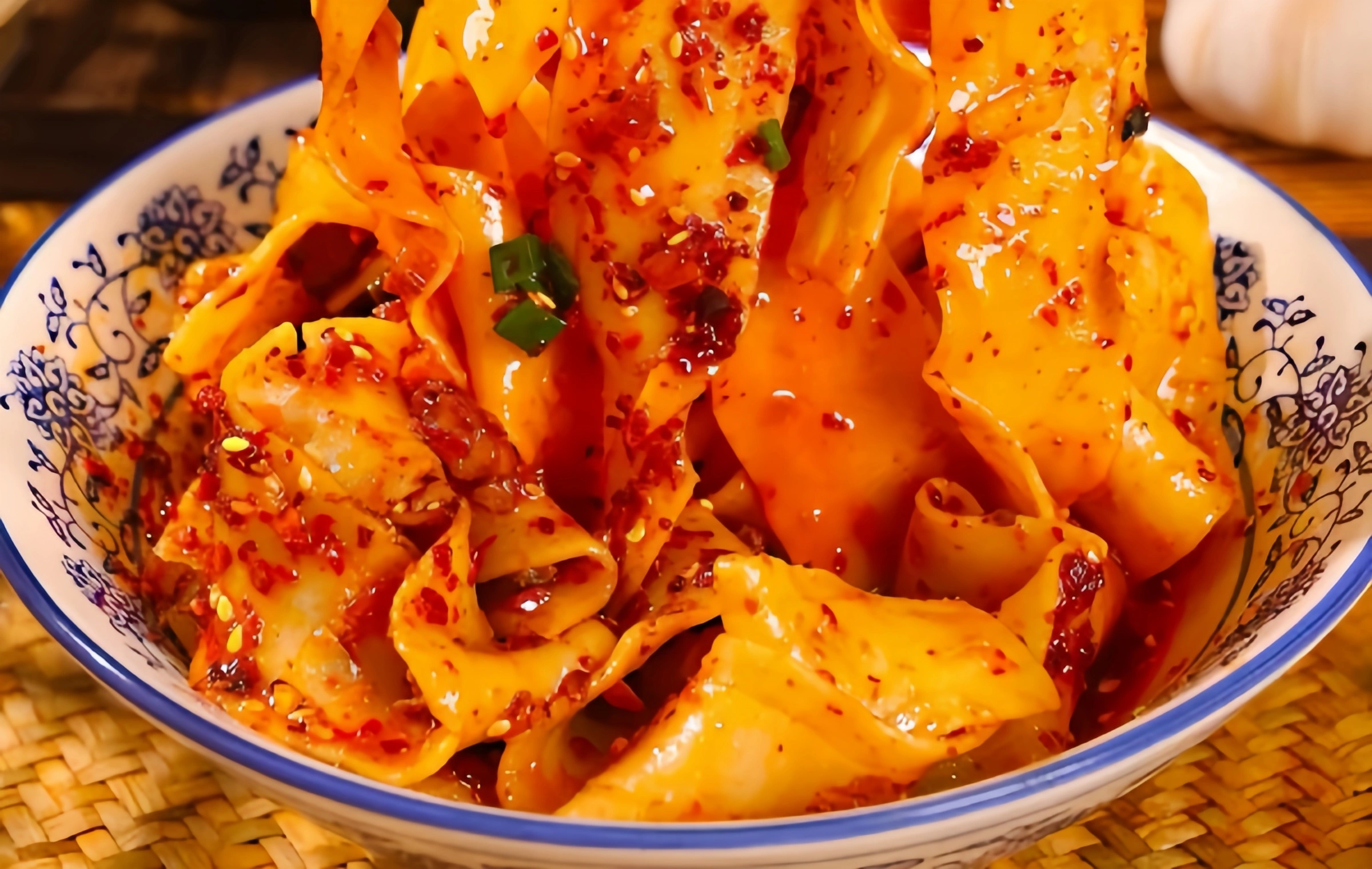 Liangpi (“cold skin noodles”) are a refreshing summer staple made from wheat or rice flour. The noodles are steamed, sliced into thin strips, and served cold with a zingy sauce of vinegar, garlic, chili oil, and sesame paste, topped with cucumbers, bean sprouts, and cilantro.