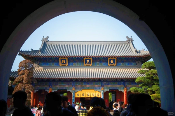 Main Entrance Gate: A grand red archway adorned with golden Buddhist symbols, leading to the Bell Tower (housing a 2-ton Ming Dynasty bronze bell).