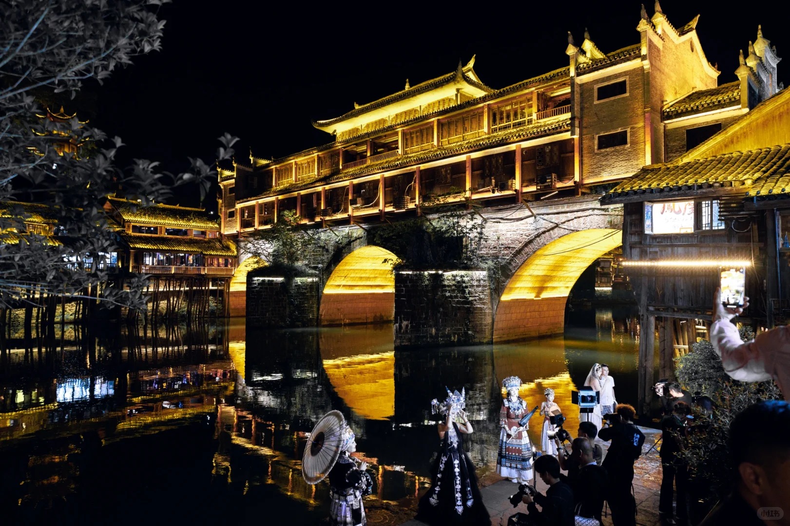 Fenghuang’s layout follows the natural curves of the Tuo River, with traditional Miao and Tujia wooden houses lining its banks. Key features include: