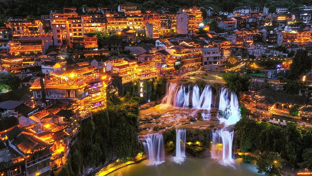 Furong Waterfall: A 200-meter-high cascade that plunges into the You River, creating a mesmerizing spectacle, especially during the rainy season.