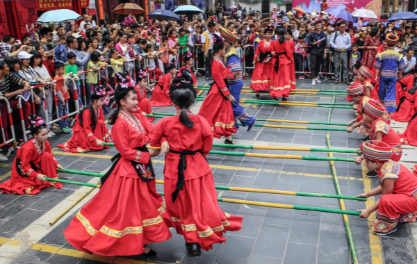 Zhuang dance is diverse and vibrant, with different styles and forms in different regions. Traditional Zhuang dances often mimic the movements of animals or depict scenes from daily life and agricultural activities. For example, the "Frog Dance" is a well-known Zhuang dance that imitates the movements of frogs, symbolizing fertility and good luck. Zhuang dances are usually performed during festivals, weddings, and other celebrations, bringing people together and creating a joyful atmosphere.